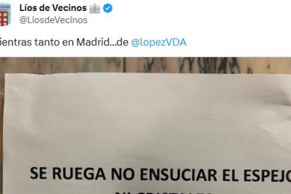 Un cartel colgado en una comunidad de vecinos, una respuesta al mensaje que se había dejado inicialmente y una segunda réplica de una palabra que lo dice todo y que se ha colado de lleno en la popular cuenta de X (la red social que ha sido conocida siempre como Twitter) Líos de Vecinos.