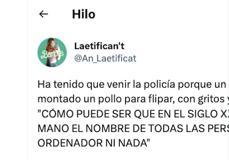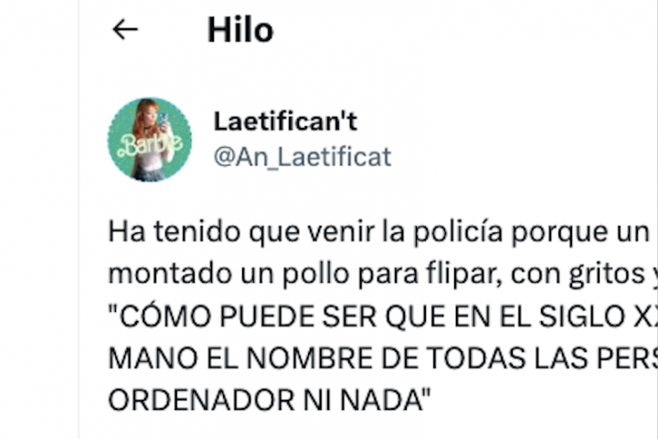 "Porque 'CÓMO PUEDE SER QUE EN EL SIGLO XXI TENGA YO QUE ESCRIBIR A MANO EL NOMBRE DE TODAS LAS PERSONAS QUE VIENEN SIN UN ORDENADOR NI NADA", ha descrito la usuaria.