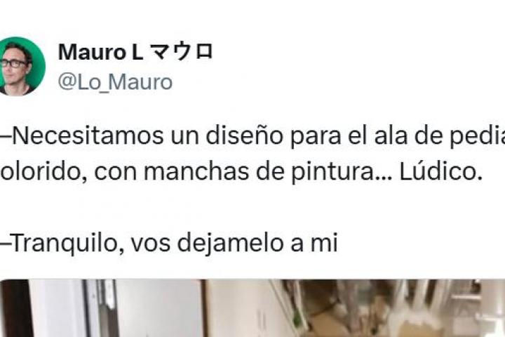 "-Necesitamos un diseño para el ala de pediatría del hospital. Algo colorido, con manchas de pintura… Lúdico. -Tranquilo, vos dejámelo a mí", ha publicado el tuitero, en tono bromista.