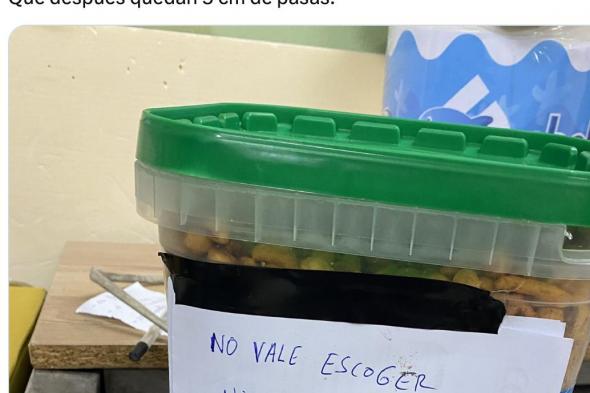 "No vale escoger ni espulgar (sic). Lo que toque te tocó", reza el cartel colocado en una gran caja de frutos secos variados, de esos en los que hay garbanzos, pasas, cacahuetes y otros alimentos indeterminados.
