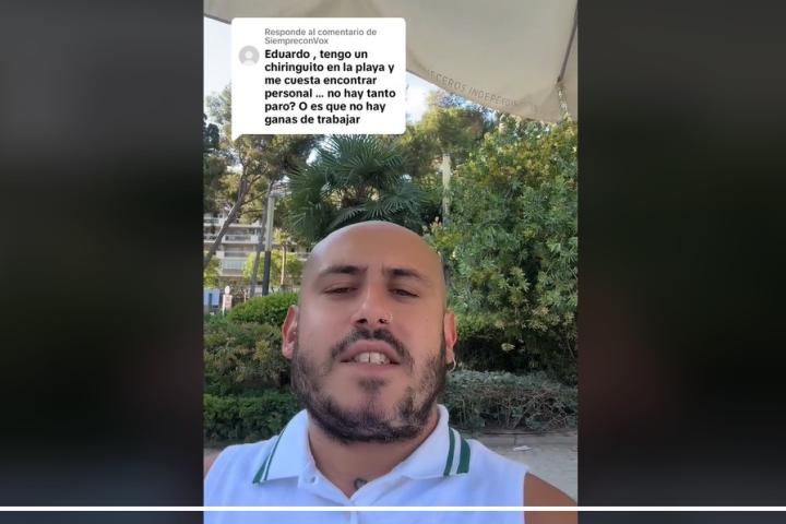 El usuario de TikTok @edujotage94 está dando mucho de que hablar con la respuesta que le ha dado a un hostelero que le había dejado caer en un comentario que la gente no tiene ganas de trabajar.