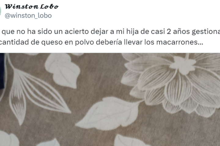 "Creo que no ha sido un acierto dejar a mi hija de casi 2 años gestionar qué cantidad de queso en polvo deberían llevar los macarrones...", ha escrito en la red social, donde en pocas horas ha acumulado más de 1.000 me gusta