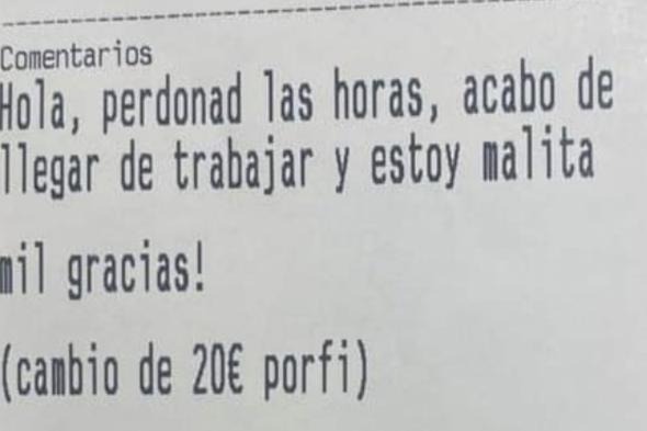 Tras recibir esta nota junto a su comida, ha dejado una reflexión: "He llegado de currar con una ansiedad terrible y me ha dado un ataquito de migraña así que he pedido cena y me he disculpado por las horas".