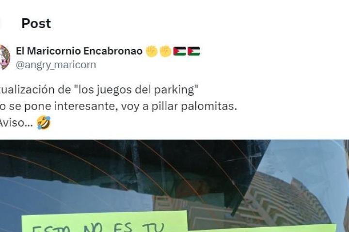 Y el usuario que ha subido las fotos señala: "Efectivamente, en un parking privado. Pero bueno, amenazar con tonterías siempre es bien, al menos en su cabeza habrá sonado apoteósico".