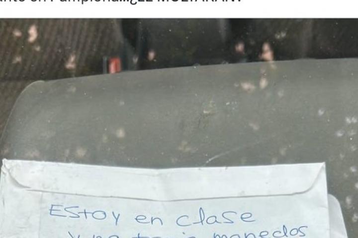 Deja en Pamplona esta nota al vigilante de la ORA que quizá no le libre de la multa pero que es digna de museo de la DGT