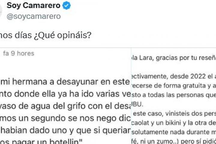 "En este caso, vinisteis dos personas: una consumió un cacaolat y un bikini y la otra decidió no pedir absolutamente nada durante más de 20 minutos (ni un café, ni un zumo...) pero sí pidió un vaso de agua del grifo, que se le sirvió sin problema. Hasta aquí todo bien", comenzaron a explicar.