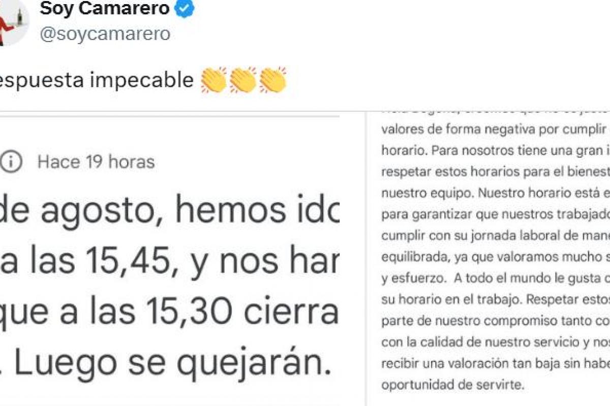 La popular cuenta @soycamarero, especializada en la hostelería y en las condiciones de trabajo abusivas, ha mostrado una de estas reseñas y la respuesta "impecable" del establecimiento.