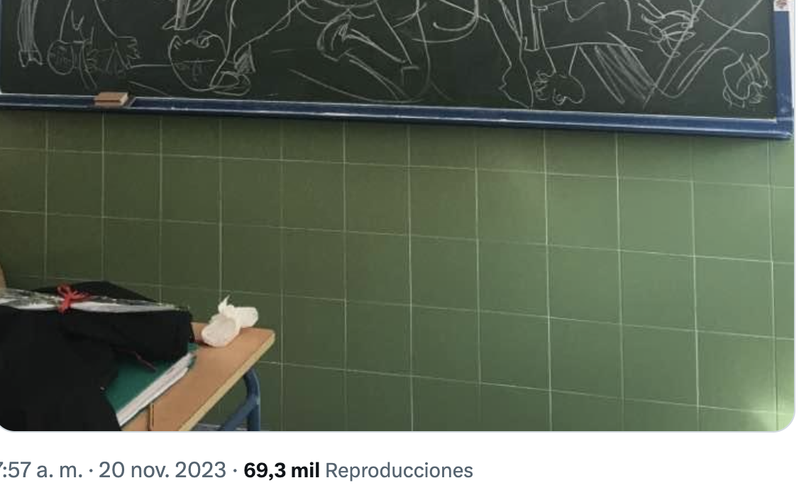 "Facebook me recuerda que hoy hace 6 años que pinté Guernica en el cambio de clase :)", ha afirmado junto a una foto de la pizarra en cuestión. La publicación está cosechando un importante éxito en la red social de Elon Musk donde lleva en pocas horas miles de interacciones y un alcance de 70.000 personas.