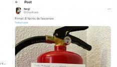 No es el único cartel que ha dado que hablar esta semana. "Por favor, no tiren cigarrillos por el hueco del ascensor. A menos que quieran volar por los aires", dice el aviso que ha dejado junto a un extintor el técnico del ascensor que ha ido a revisar un edificio.