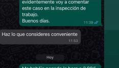 En ella se ve como la joven le decía que iba a ir a inspección de trabajo por las condiciones en las que la habían echado, ya que la despidieron por no pasar el periodo de prueba y sin darle finiquito.