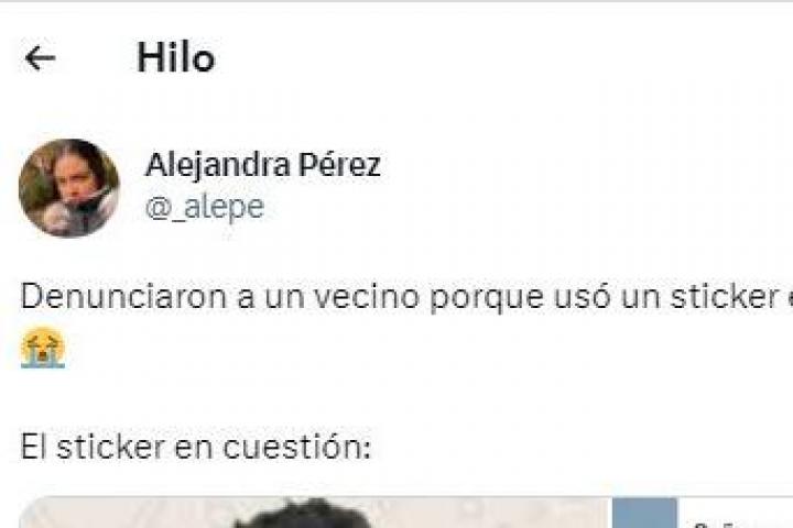 Y así ha resumido la internauta lo que ha ocurrido, aportando, además, la fotografía del mensaje en el que la susodicha advierte de la demanda: "Denunciaron a un vecino porque usó un sticker en el grupo del edificio".