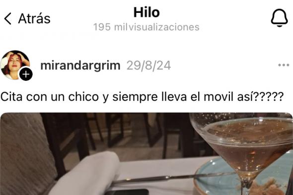 "Cita con un chico y siempre lleva el móvil así?????", pregunta. Y ha provocado cientos y cientos de reacciones. Muchas de ellas aseguran que colocar así el teléfono es una buena señal, porque significa que esa persona no quiere que le distraiga la pantalla del aparato para centrar su atención en la persona con la que está.