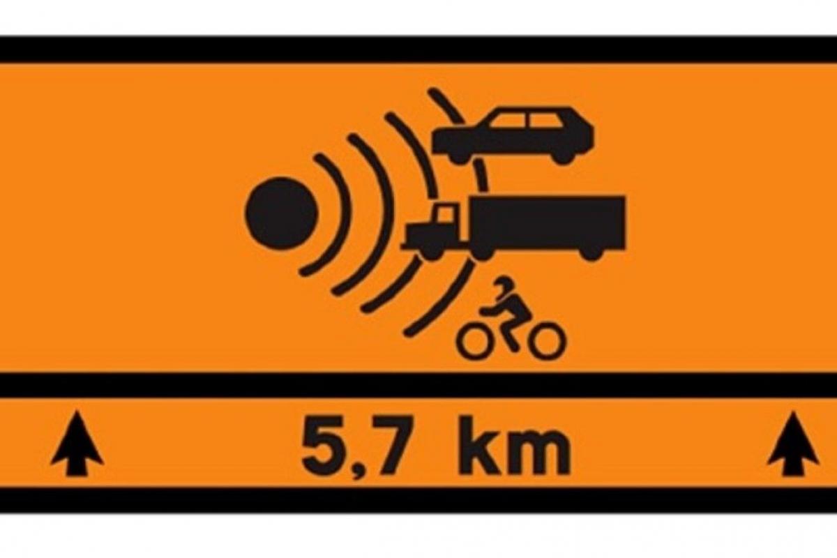 En este caso, la DGT informaba del significado de una señal que puede haber dudas en la población pero que hay que conocer. Esta está formada por un fondo naranja y unas ondas que advierten a turismos, camiones y motos. Debajo de este dibujo, hay dos flechas y entre ellas una distancia.