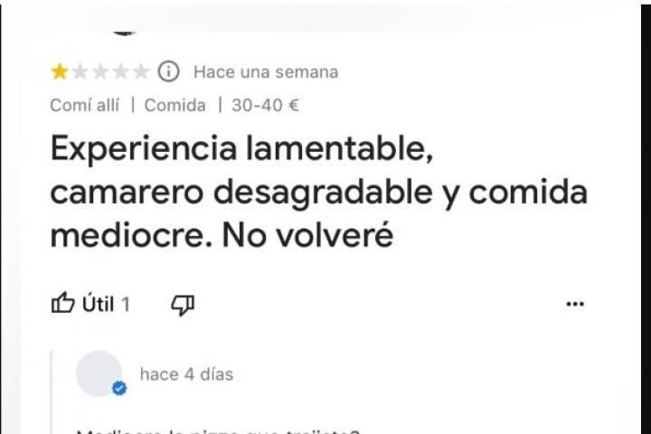 La reseña y la respuesta las ha compartido en X, la red social antes conocida como Twitter, el usuario @soycamarero, especializado, en contenido de hostelería, y rápidamente ha provocado la indignación de numerosas personas.
