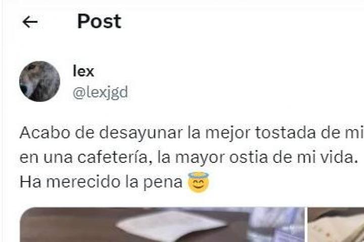 Así ha contado el tuitero su experiencia: "Acabo de desayunar la mejor tostada de mi vida y me acaban de dar, en una cafetería, la mayor hostia de mi vida".