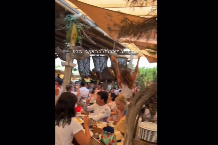 En las imágenes lo que se ve es básicamente una fiesta en la que hay gente dándolo todo al ritmo de la música e incluso algunos subiéndose a las sillas a bailar. Algo, desde luego, más propio de una boda que de una cena normal.