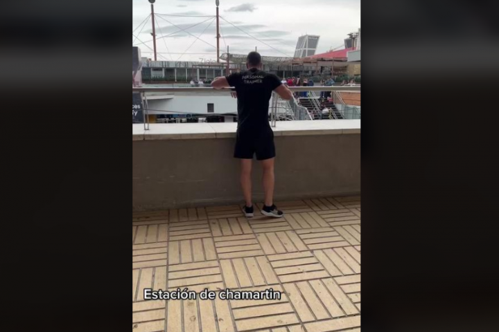 En el vídeo, publicado por @erandaluu en Tiktok, se puede observar al hombre subiéndose a un poyete que se encuentra a gran altura, mientras se dirige a un gran grupo de personas, que esperan impacientes a que se reanude el servicio de trenes.
