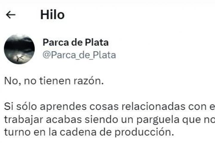 Unas palabras a las que el doctor en Microbiología Molecular ha reaccionado este domingo con un hilo que se ha hecho viral rápidamente. "No, no tienen razón. Si sólo aprendes cosas relacionadas con el campo en el que quieres trabajar acabas siendo un parguela que no vale más que el robot de turno en la cadena de producción", ha recriminado.