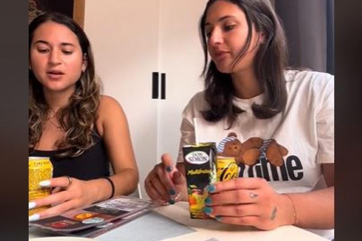 En segundo lugar, un zumo Multifrutas de la marca Don Simon. Aunque no lo han calificado verbalmente, a una de ellas le ha gustado y a la otra no le ha convencido del todo. De hecho, lo único que ha dicho es que realmente solo tiene ganas de "probar" la Coca-Cola de limón Zero Azúcar, la que es de color amarillo.