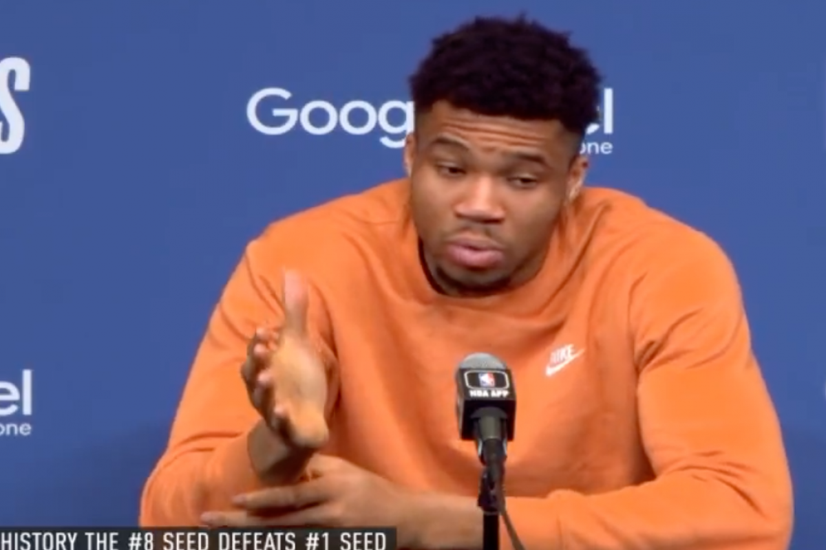 Preguntado por si ser uno de tres principales favoritos y caer a las primeras de cambio es un fracaso, Antetokounmpo ha comenzado suspirando y resignándose ante esta cuestión del periodista Eric Nehm: "Díos mío, me hiciste esta misma pregunta el año pasado. ¿Consigues que te asciendan cada año en tu trabajo?".