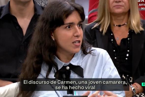Carmen Merina, más conocida como @rayomcqueer_ en TikTok, ha visitado este sábado el plató de laSextaXplica tras compartir un vídeo en la red social que se hizo muy viral en el que se quejaba del salario que percibía en la cafetería en la que trabaja.