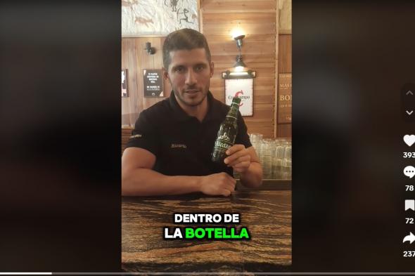 La cuenta de TikTok @lacaverna_malaga ha publicado un aviso, que da uno de sus camareros, que afecta a todos aquellos que suelen pedir en los bares botellines de cerveza que luego se beben a morro.