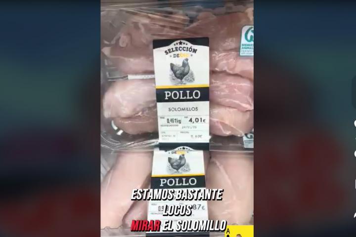 "Pero vamos a ver. ¿Estamos locos o qué? Pues sí, estamos bastante locos. Mirad, el solomillo de pollo, a 8,69 euros el kilo. La pechuga de pollo a 6,39 euros el kilo. Hay una diferencia de precio por kilo de 2,30 euros", constata.