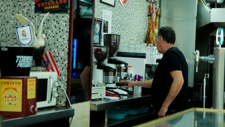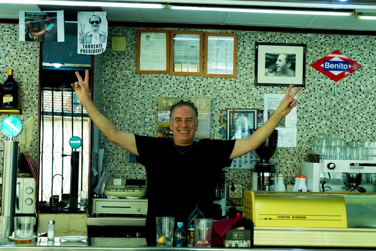 El propietario de este establecimiento es Benito, quien a sus 63 años ha vivido una experiencia que nunca olvidará. Este madrileño de adopción natural de Villarrubia de los Ojos (Ciudad Real) no dio crédito cuando un localizador contactó con él para que su bar se convirtiera en uno de los escenarios principales de Torrente presidente.