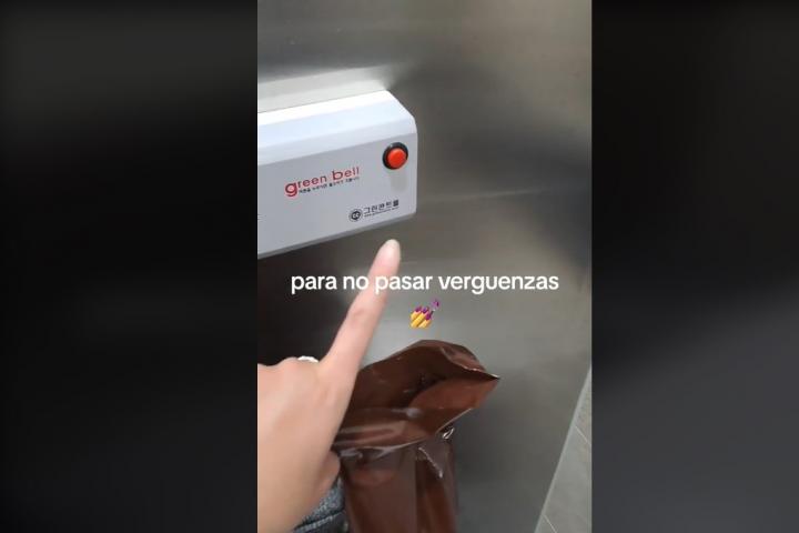 La usuaria de TikTok @jg_1803 acumula más de 200.000 'me gusta' tras mostrar el botón que ha encontrado en un baño de Seúl, la capital de Corea del Sur, y que según señala sirve "para no pasar vergüenzas".