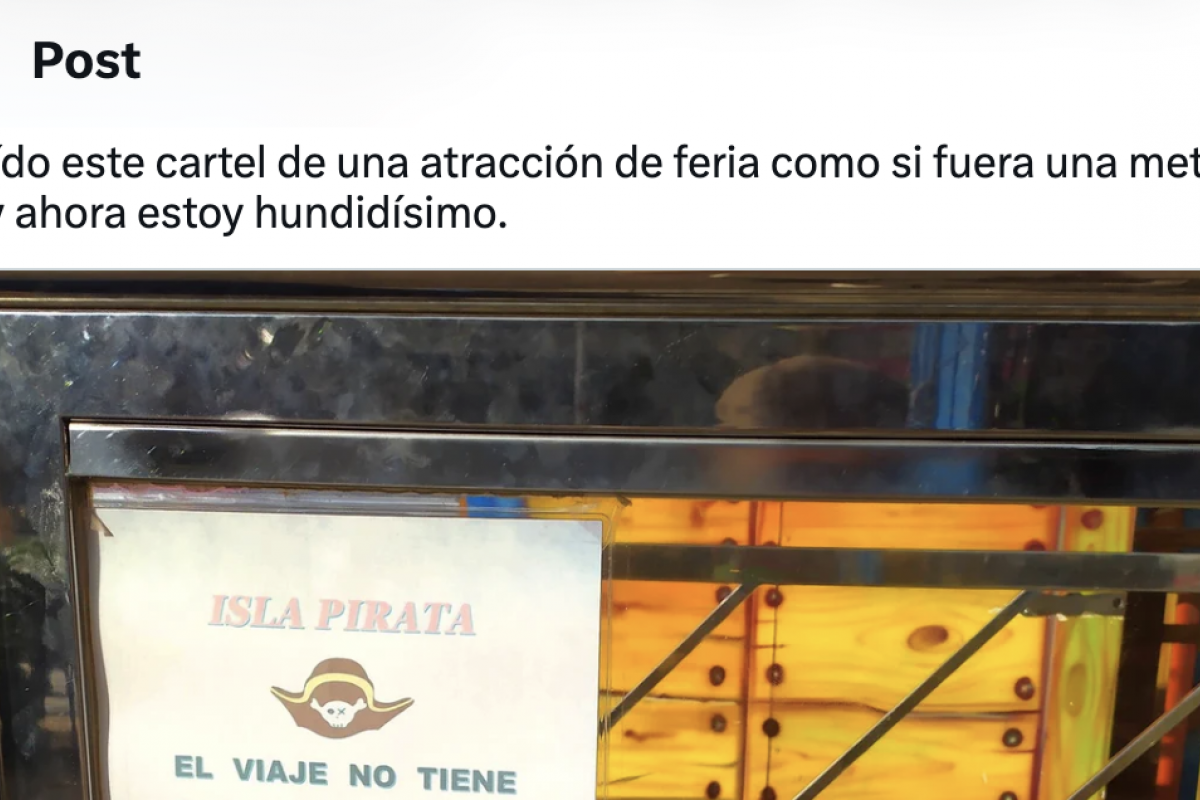 "He leído este cartel de una atracción de feria como si fuera una metáfora vital y ahora estoy hundidísimo". Con este breve mensaje escrito en catalán ha compartido @nonantlemarc el cartel que se ha encontrado en la atracción Isla Pirata de la feria.