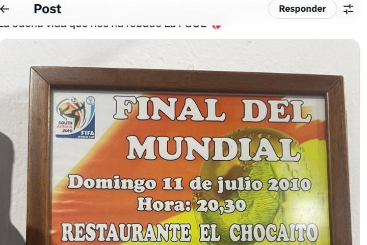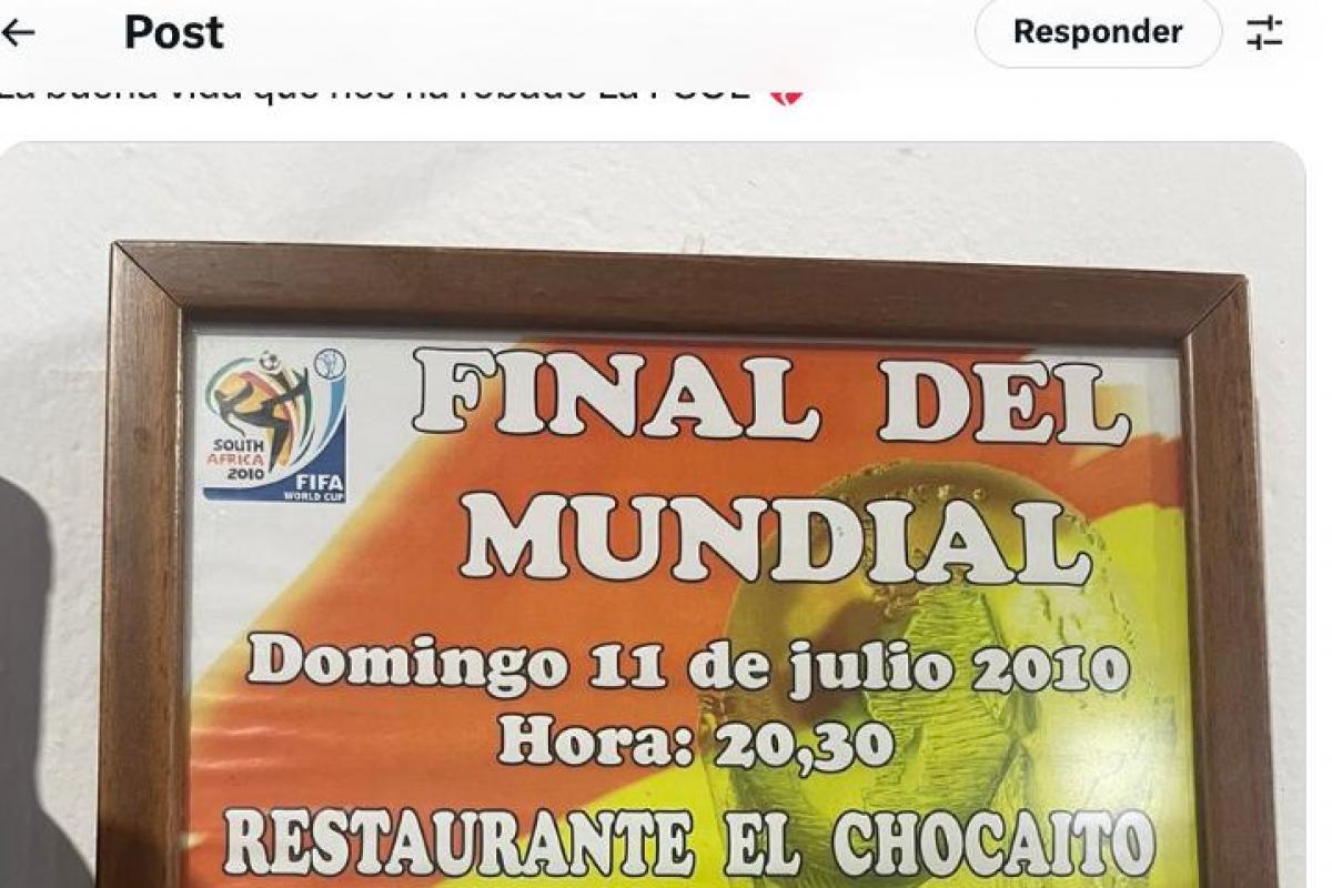 Un usuario de X (antes Twitter) ha compartido un cartel de un bar que en el año 2010 ofrecía "precios populares" para ver la final del mundial entre España y Holanda, celebrada el 11 de julio de ese año.