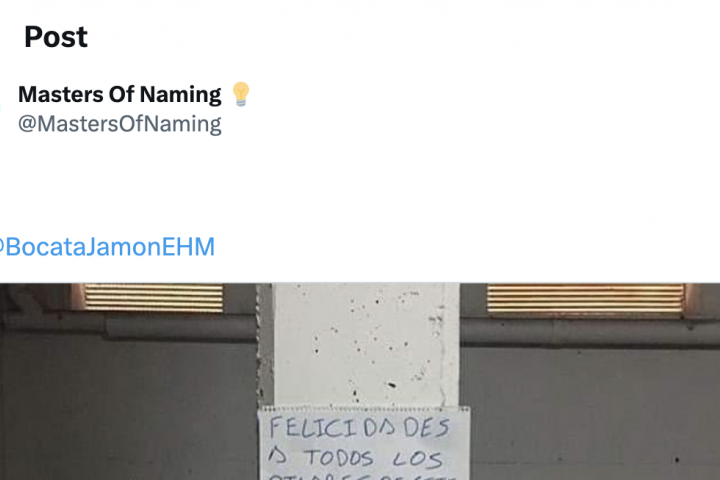 La cuenta Masters of Naming, perfil dedicado a compartir mensajes ingeniosos y juegos de palabras, ha publicado un cartel que ha aparecido colocado en una de las columnas de un parking y lo cierto es que no puede ser más ingenioso: "Felicidades a todos los pilares de este parking".