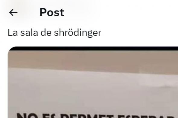 "La sala de Schrödinger", ha asegurado en el tuit, antes de mostrar lo que estaba escrito, a ordenador, en el cartel.