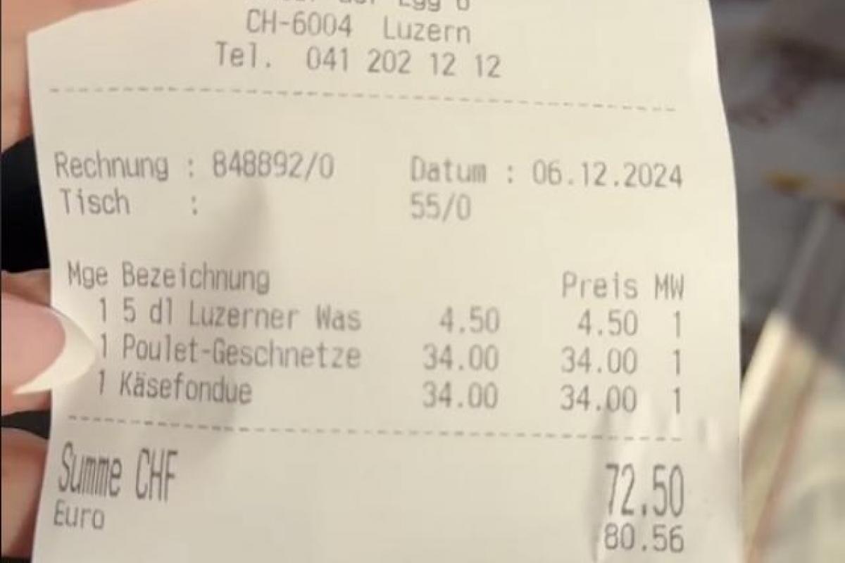 Después ha ido a comer a un sitio de comida tradicional donde ha pedido una fondue y una carne. Al ver el ticket ha llamado la atención que le han cobrado el agua del grifo, que le ha costado más de 5 euros.