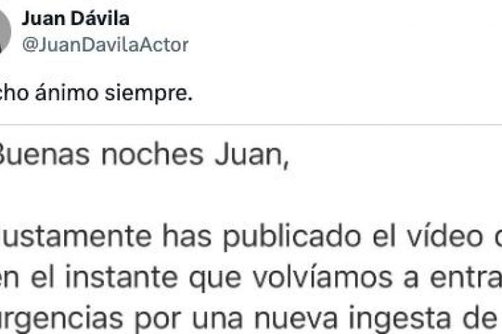 "Justamente has publicado el vídeo de mi hija en el instante que volvíamos a entrar en Urgencias por una nueva ingesta de pastillas. Verlo me ha recordado que en aquellos días ella estaba bien, se sentía fuerte, pero como bien explica hay un momento en que cualquier cosa le puedes hacer cambiar la perspectiva de la realidad", se puede leer en el texto.