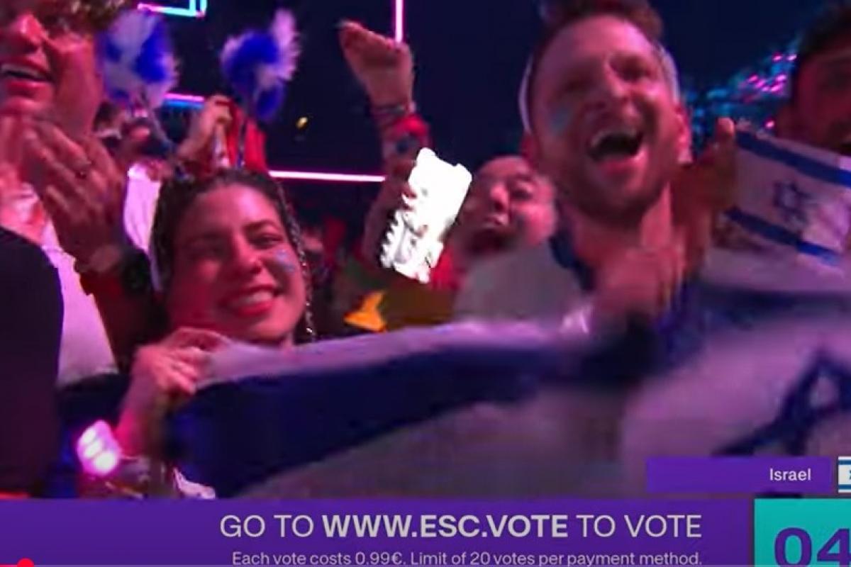 Efectivamente, tras la actuación de Yuval Raphael, representante de Israel, las cámaras enfocaron al público, supuestamente emocionado con esa artista. Pero al fondo, tras una bandera de Israel, alguien sujetaba un teléfono móvil en cuya pantalla se veían claramente los rostros de Julia Varela y Tony Aguilar, los comentaristas de RTVE en el festival.