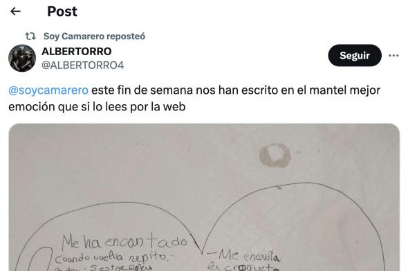 En X, anteriormente Twitter, Soy Camarero ha compartido el mensaje que le ha mandado un hostelero con un foto del dibujo que un cliente le ha dejado escrito en el mantel en el que ha comido.