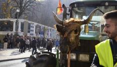 A continuación se ha explicado que García-Gallardo se plantó en el edificio junto a las Cortes autonómicas para posar junto a los agricultores, ganaderos y manifestantes que se habían concentrado. Ahí es cuando aparece él luciendo un cartel en el que aparece el logo de la agenda 2030 tachado.