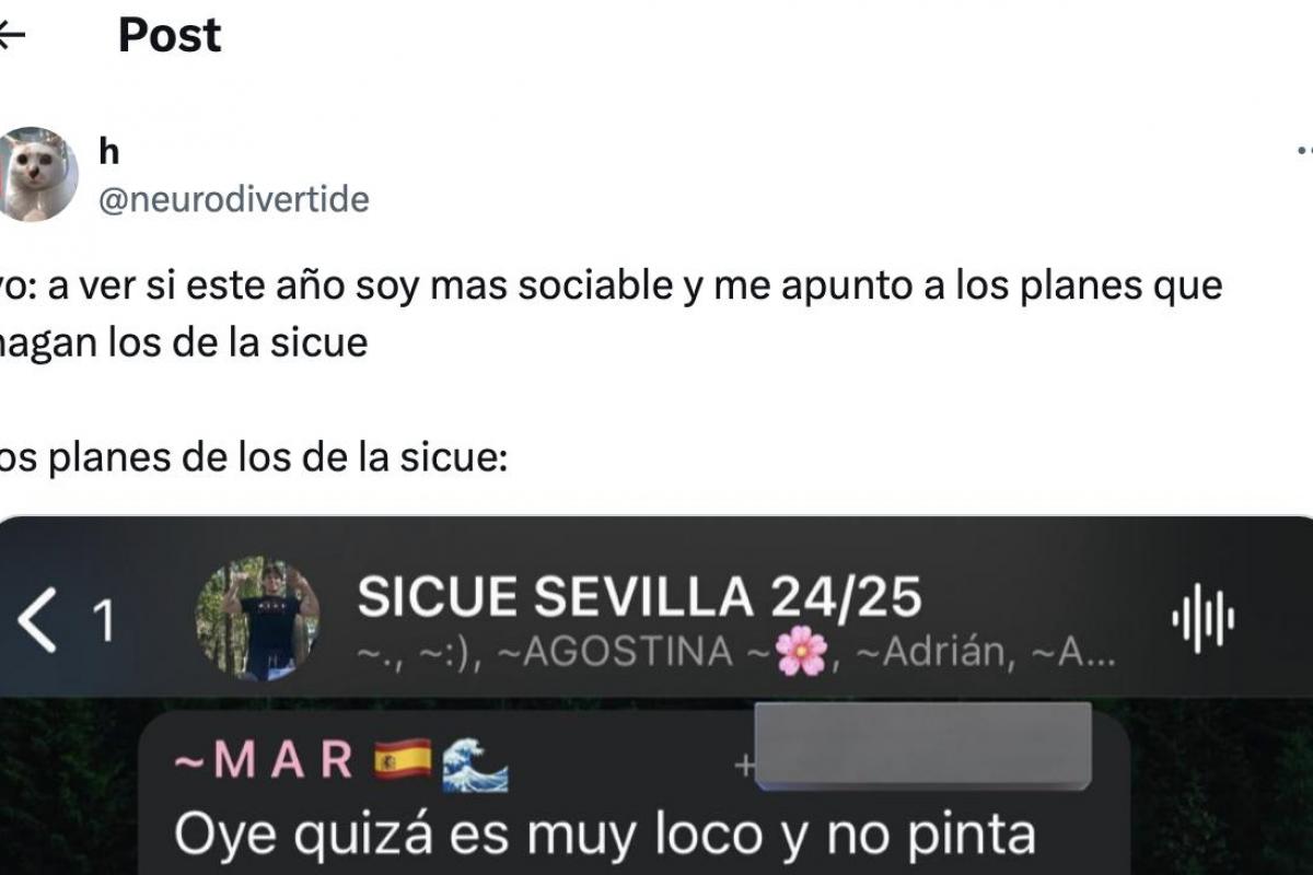 Un usuario de x (antes Twitter) ha mostrado el mensaje que alguien ha compartido en el grupo que tiene con otros compañeros de clase de SICUE, es decir, los que han cambiado de universidad y se han ido a otra comunidad autónoma para estudiar.