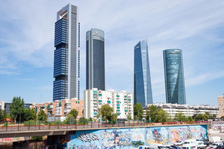 Este miércoles ha aparecido en las inmediaciones del parque empresarial madrileño de las Cuatro Torres un coche con el techo totalmente aplastado.
