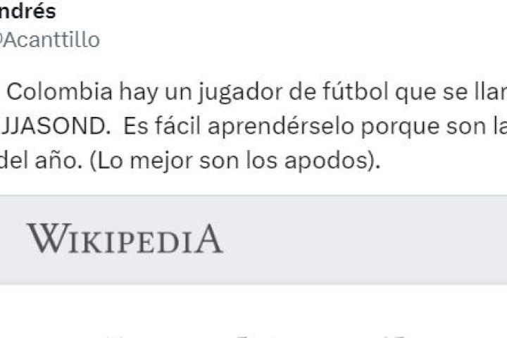 A continuación, ha asegurado que "lo mejor son los apodos". Junto a estas palabras ha publicado una captura de la entrada en Wikipedia del futbolista. En esta se detalla que Efmamjjasond González Palacios, de Antioquia, Colombia, es un delantero que actualmente juega en el Kaizer Chiefs Football Club de Sudáfrica.