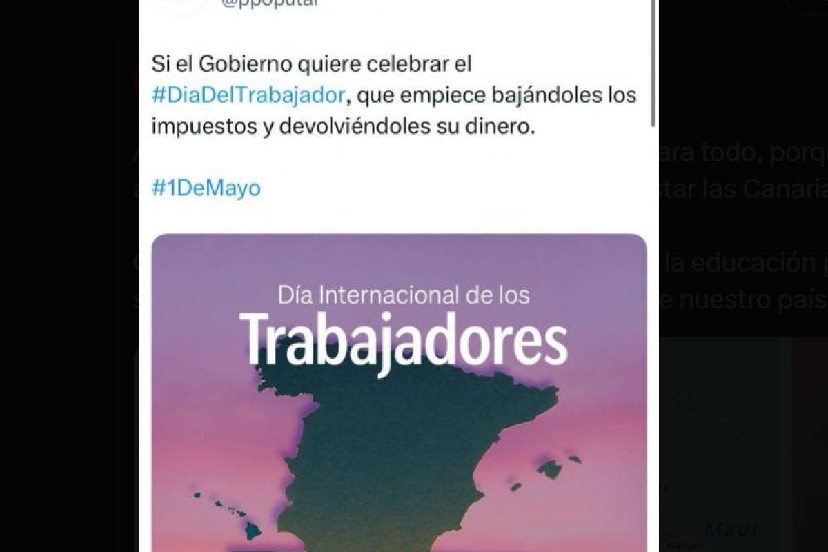 El Partido Popular comparte este tuit por el Día del Trabajador y el error es tremendo: lo han terminado borrando