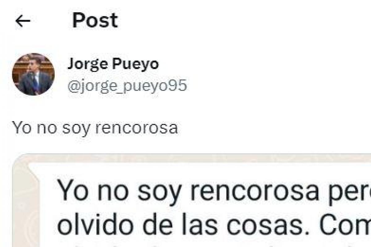 El usuario de Twitter @jorge_pueyo95 ha publicado una fotografía con la conversación de WhatsApp que ha tenido con una chica que aseguraba no ser "rencorosa".