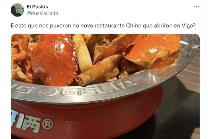 "¿Y esto que nos pusieron en el nuevo restaurante chino que han abierto en Vigo?" ha preguntado el usuario @PuskisCelta junto a la imagen del plato en cuestión.