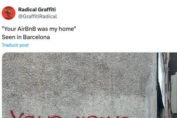 Una de las fórmulas más llamativas son la de las pinturas o grafitis urbanos en las que se hacen estas quejas. En las últimas horas se ha visto el potente lema que han pintado en inglés en una pared de una casa de Barcelona: "Tu AirBnB era mi casa".