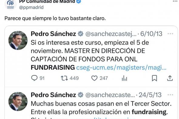 Ahora, en X (antes Twitter) lo que más comentarios está dejando es el tuit del PP de la Comunidad de Madrid, presidida por Isabel Díaz Ayuso, por recuperar los mensajes antiguos del presidente del Gobierno cuando no ostentaba el cargo.