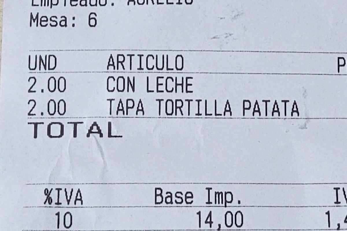 Otro ciudadano de Mallorca ha publicado lo que le han cobrado por un café con leche y por una tapa de tortilla. El precio del café no tiene mucho misterio: 1,70 euros. Un precio para muchos alto pero dentro de lo que cuestan ahora los cafés.