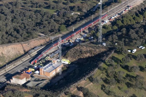 - En ese momento, un tren Alvia que circulaba desde Madrid hacia Huelva recibe el impacto de los vagones descarrilados del Iryo, con 200 personas a bordo.
