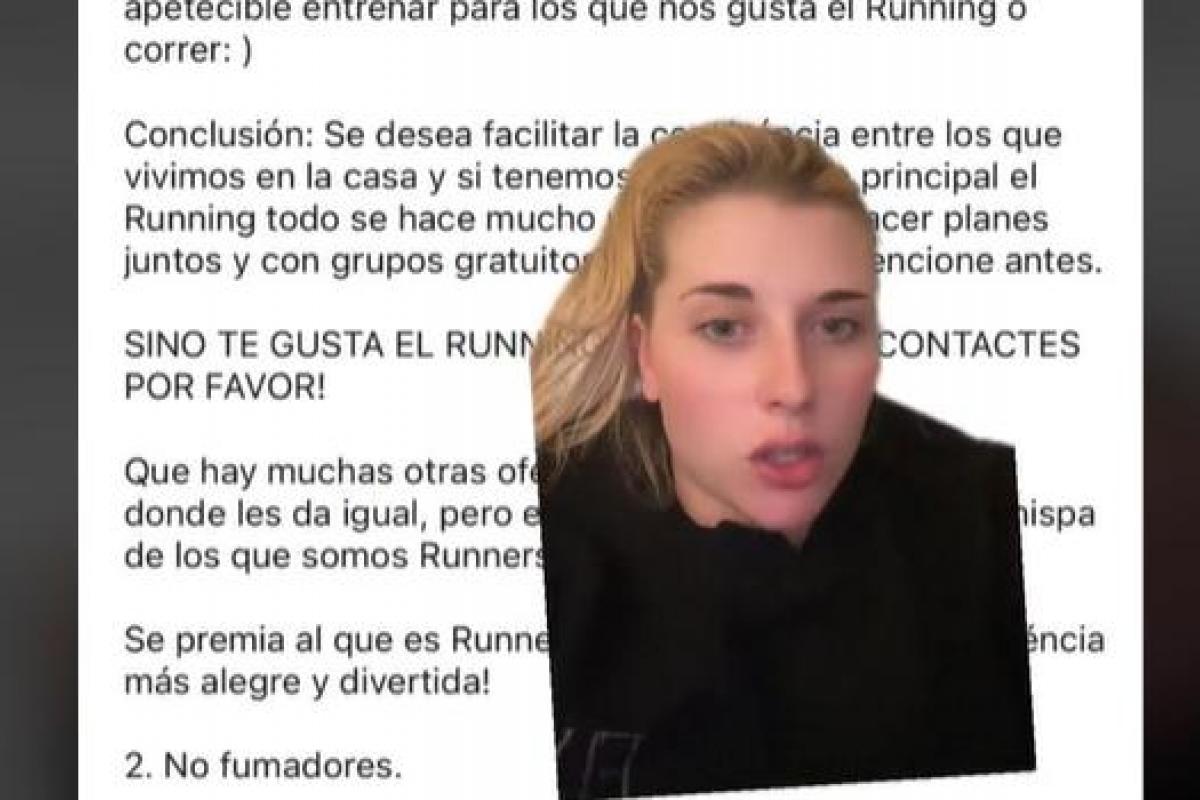 "Conclusión: Se desea facilitar la convivencia entre los que vivimos en la casa y si tenemos como afición principal el 'running', todo se hace mucho más fácil para hacer planes juntos. SI NO TE GUSTA EL 'RUNNING', NO CONTACTES, POR FAVOR", ha concluido el requisito.
