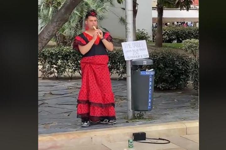 Lo ha publicado en su cuenta de TikTok (@manuvargassz_) y a la gente le ha maravillado. Antes de casarse le han hecho colocarse en una calle con un vestido de flamenco y, flauta en mano, hacer sonar la banda sonora de la conocida película Titanic.